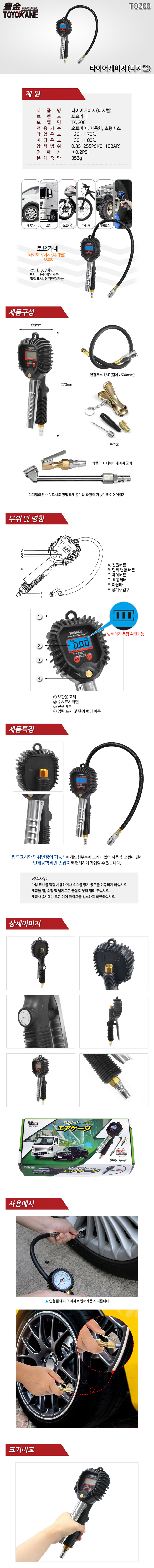 토요카네 타이어게이지(디지털) TO100/ TO200 TOTOKANE, 에어공구, 공구몰 1173-116