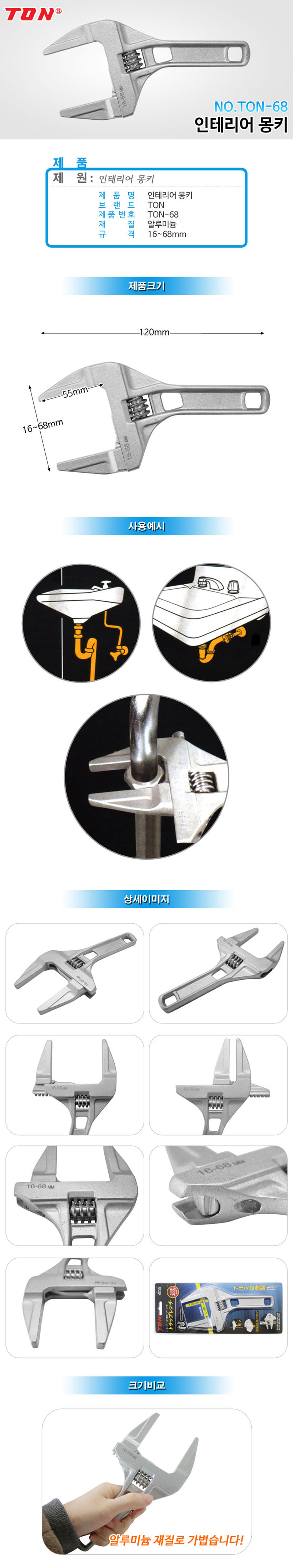 톤 인테리어몽키(A/L) TON68 16~68mm, 몽키스패너, 공구몰, 103-6576