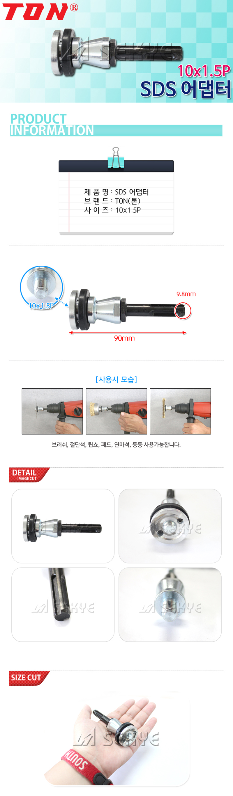 톤 SDS아답타 (SDS-그라인더) SDS13-1 10x1.5pt, 공구몰, 105-1291