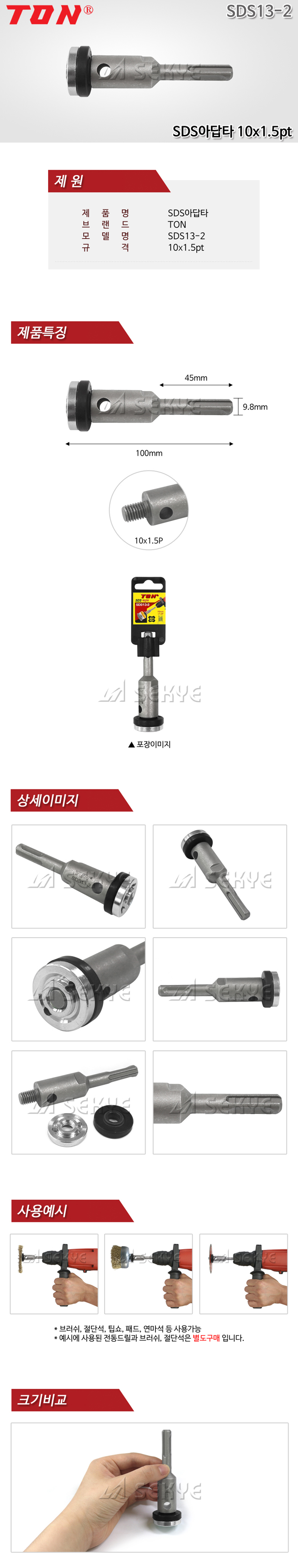 톤 SDS아답타 (SDS-그라인더) SDS13-2 10x1.5pt, 공구몰, 105-1379