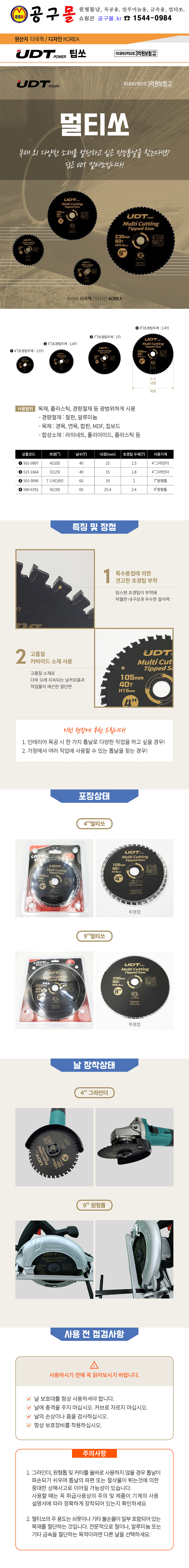 UDT,팁쏘(멀티쏘) 105mm(x40Tx15mm UDT팁쏘, 목재,금속 원형톱날, 패널용톱날, 공구몰, 501-0987