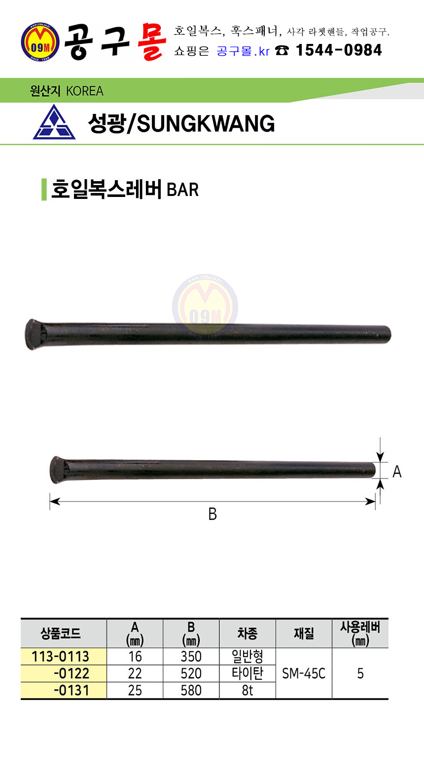 호일복스레버 25mmx580mm(자동) (8TON) 성광금속, 타이어공구, 공구몰, 작업공구, 113-0131