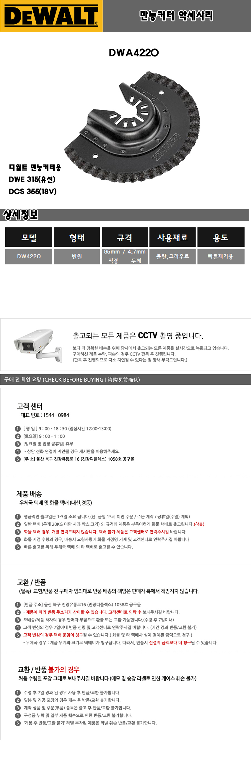 디월트 멀티커터 악세사리 DWA4220 몰탈제거 C509-4776