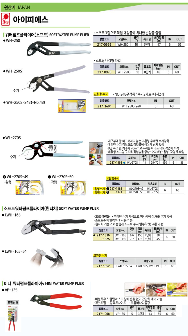 워터펌프플라이어(소프트) WL-270S IPS, 아이피에스, 수공구, 작업공구,217-1153