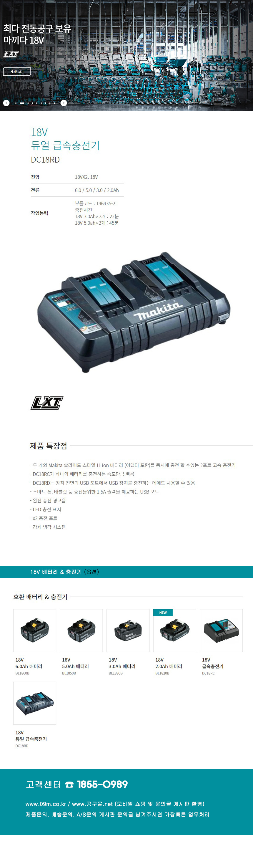 마끼다 18V 듀얼 급속충전기 DC18RD, MAKITA, 공구몰 울산점, 196935-2