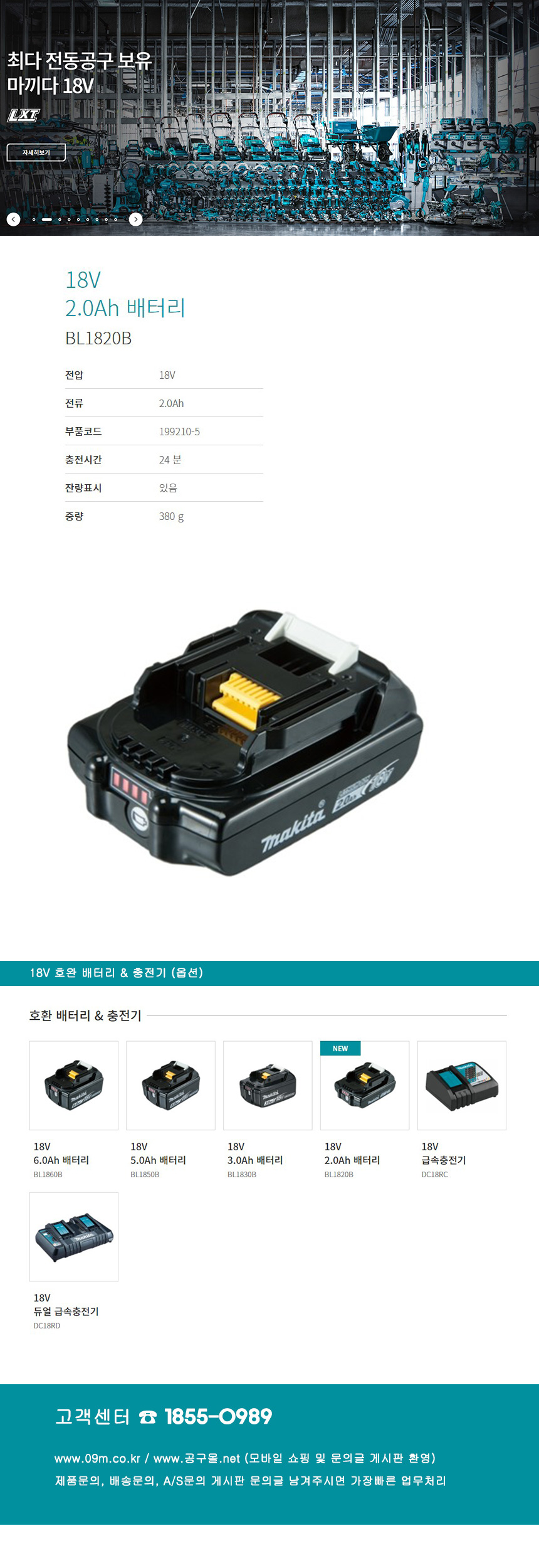마끼다- 배터리 18V 2.0Ah BL1820B, MAKITA, 공구몰 울산점, 199210-5
