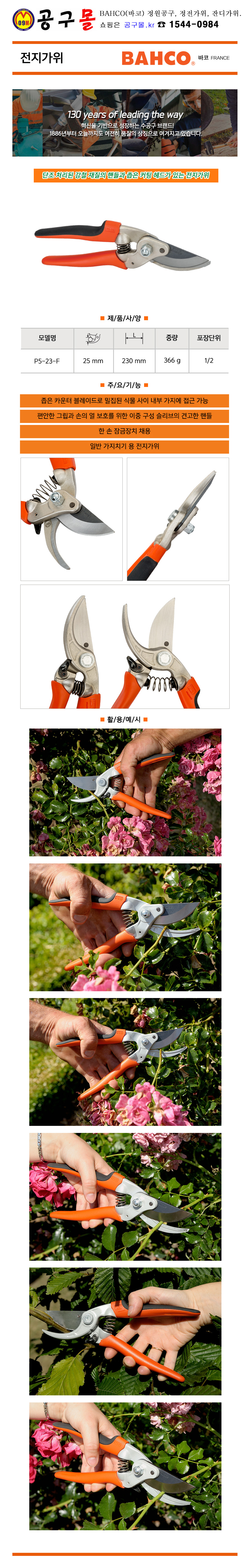 전지가위 P5-23-F L230mm, BAHCO, 정원공구, 전기가위, 공구몰, 7311518275280