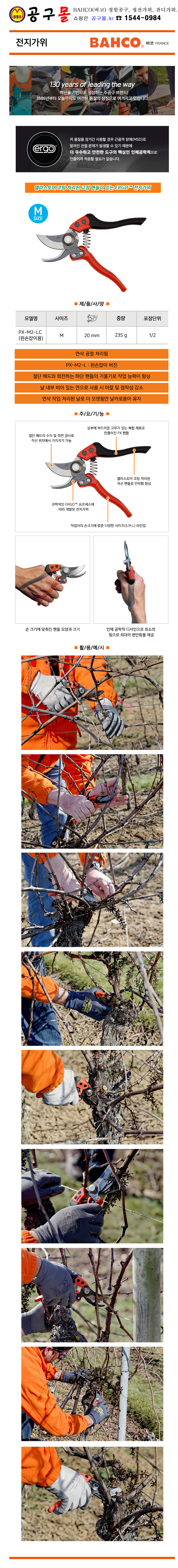 전지가위(M-SIZE) PX-M2-LC(왼손잡이용) 절단20mm, BAHCO, 정원공구, 전기가위, 공구몰, 7311518240714