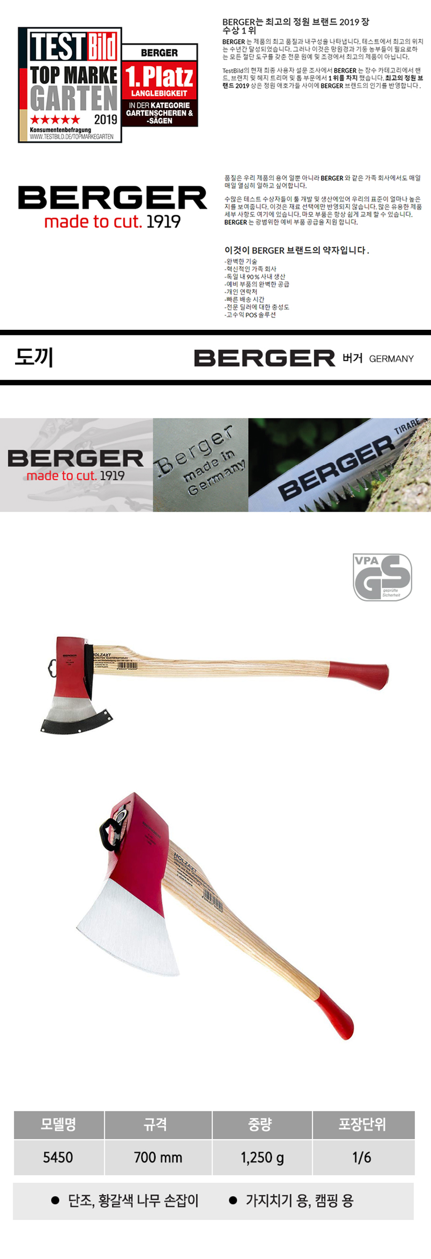 도끼 5450 700mm BERGER, 버거, 손도끼, 캠핑용도끼, 공구몰
