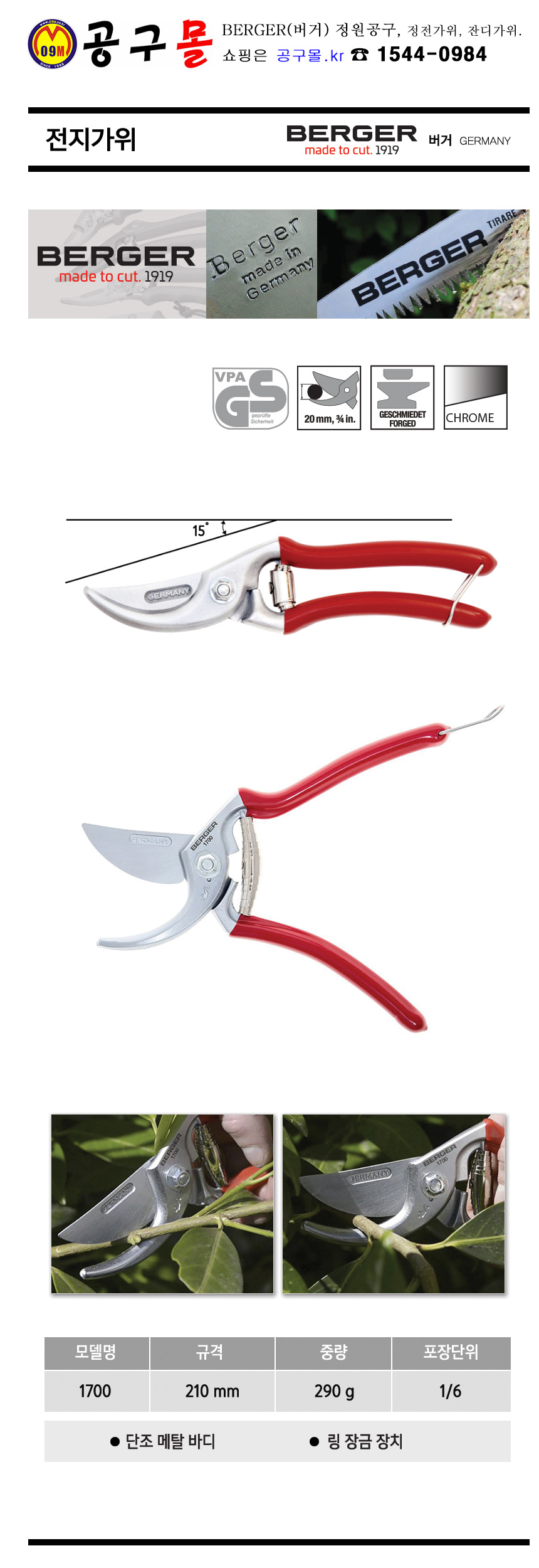전지가위 1700 (190gx210mm) BERGER/버거/가든공구/원예공구