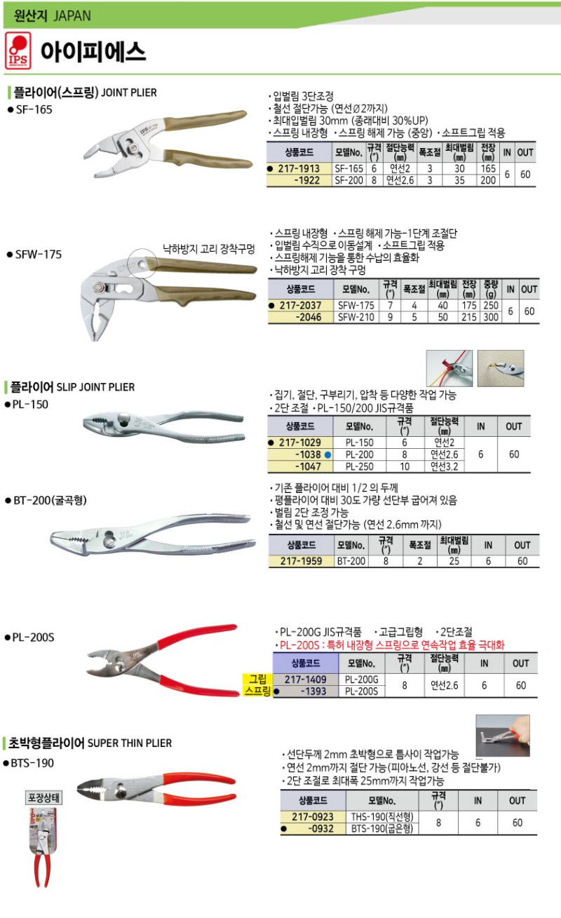 워터펌프플라이어(초박형) BW-200(곡) IPS, 아이피에스, 수공구, 작업공구,2171791