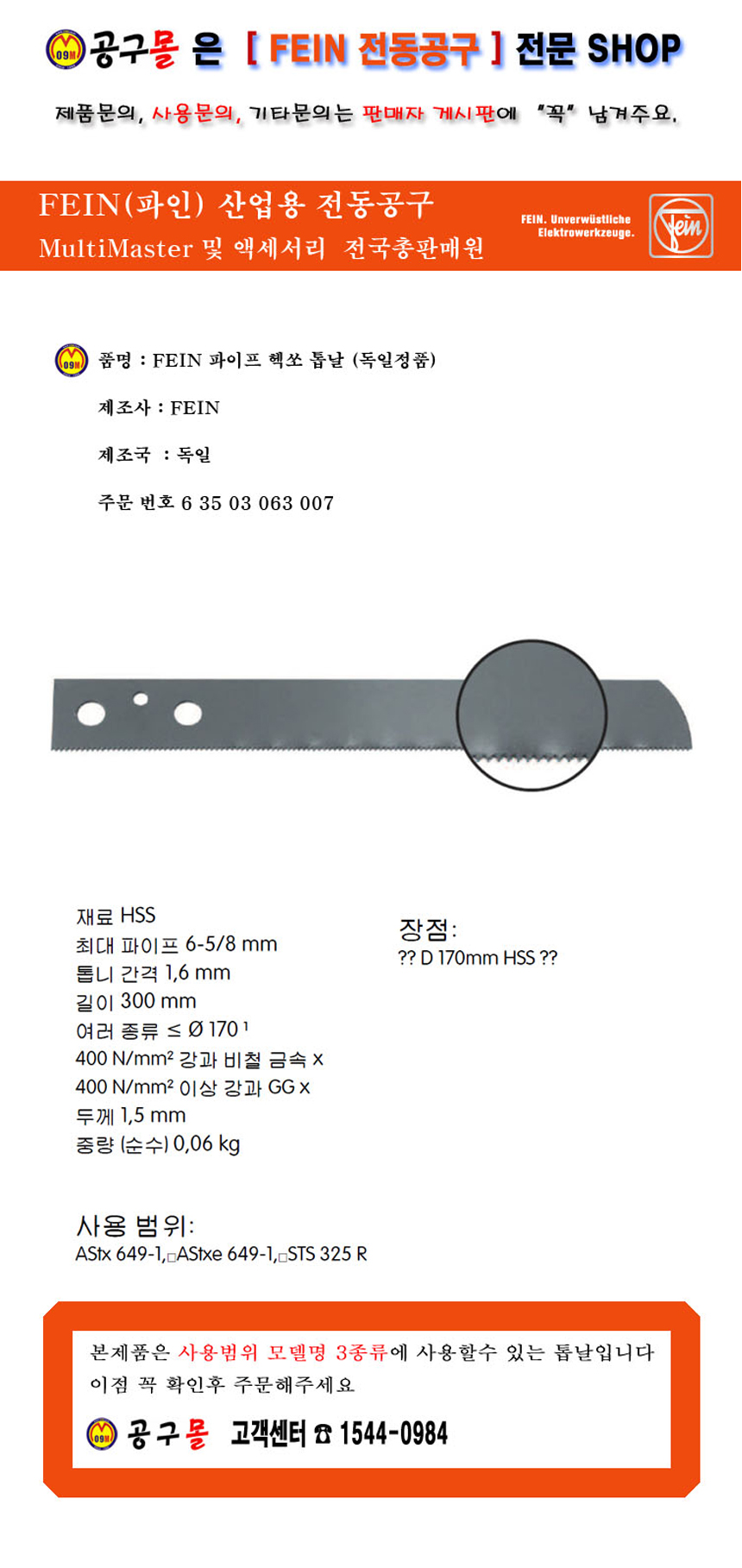 파인 핵쏘톱날 300mm FEIN,파인(AStx649,AStxe64 컷쏘날, 헥쏘날