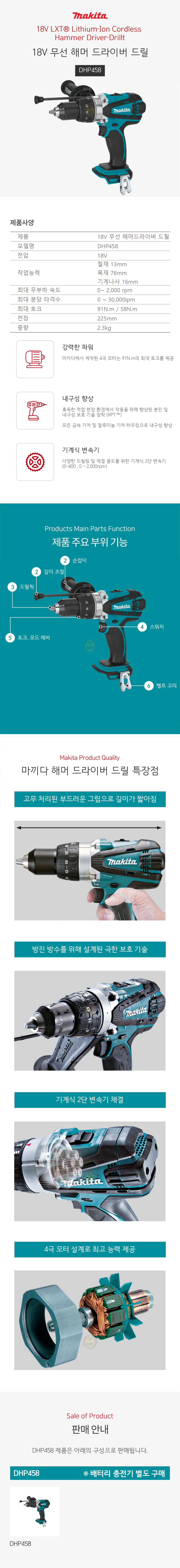 마끼다 18V 충전해머드릴 DHP458Z (베어툴) 드라이버 충전드릴 충전드라이버 드릴드라이버