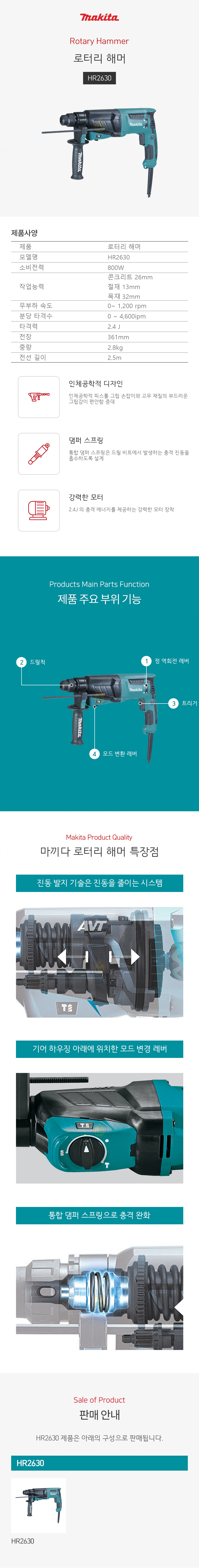 마끼다 로타리함마 HR2630 (26mm-800W) 함마드릴 햄머드릴