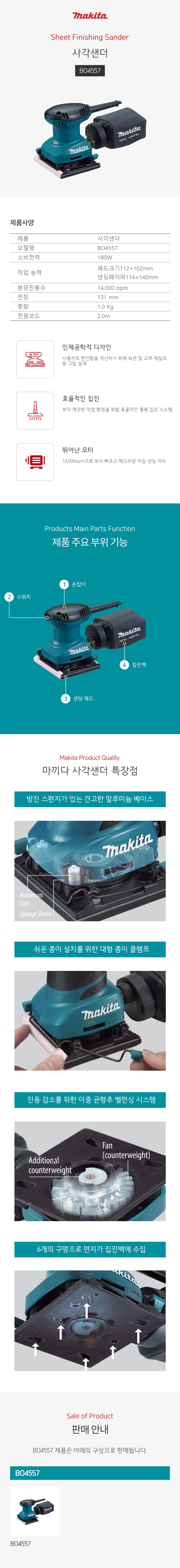 마끼다 사각샌더 BO4557 (180W) 샌딩긱 사각샌딩기 샌더