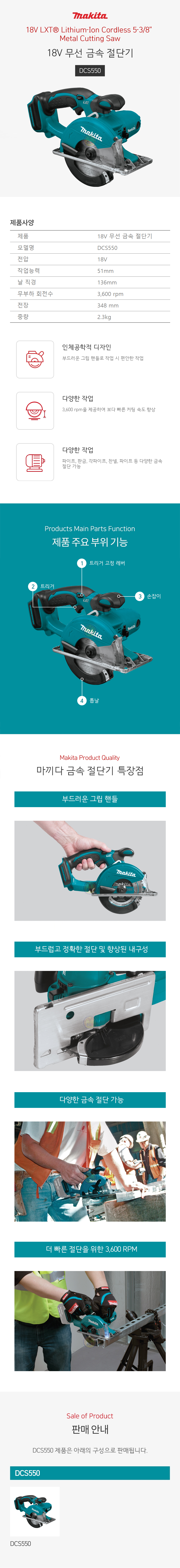 마끼다 18V 금속절단기 DCS550Z (베어툴) 136mm makita, 공구몰, 철판절단기 금속절단기