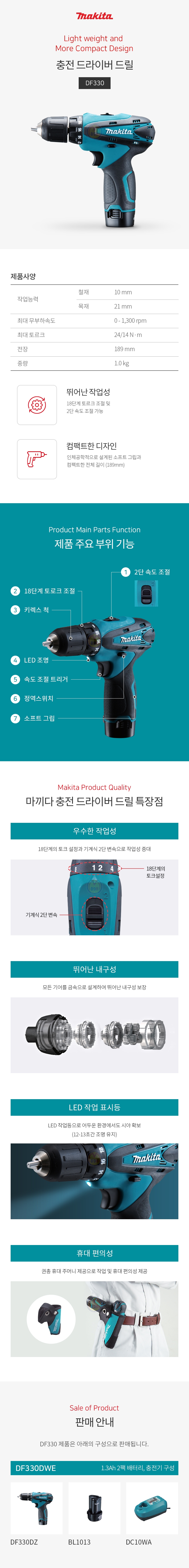 마끼다 10.8V 충전드릴 DF330DWE (1.3Ah,1B) 드라이버 충전드릴 충전드라이버