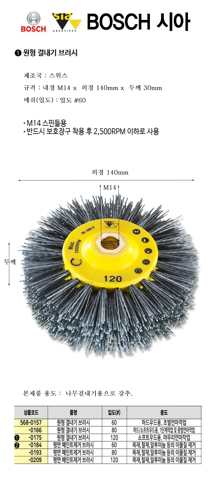 시아 나무결내기 브러시 입도60x140x30mm (2500RPM) SIA/목재결내기/원목결내기, F03E002KY5,5680157