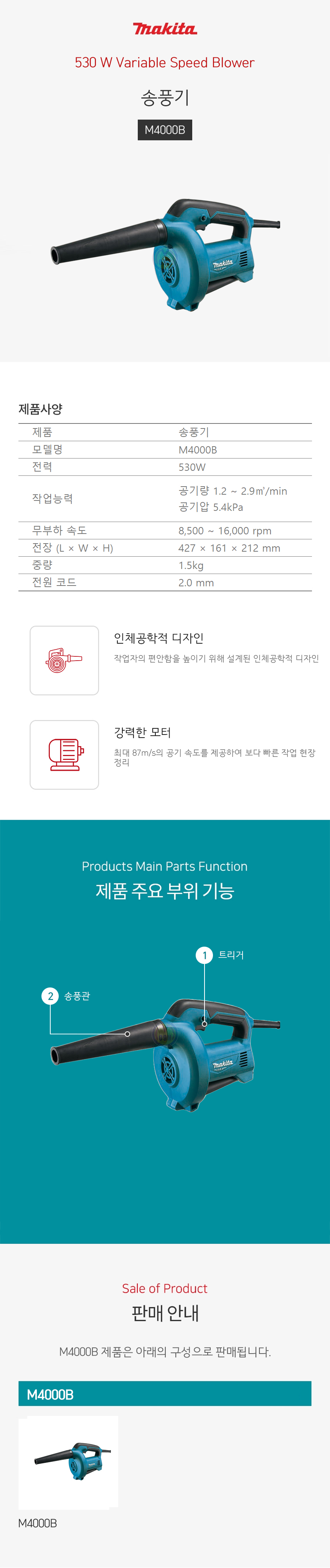 마끼다 송풍기 M4000B (530W) 청소기 낙엽청소