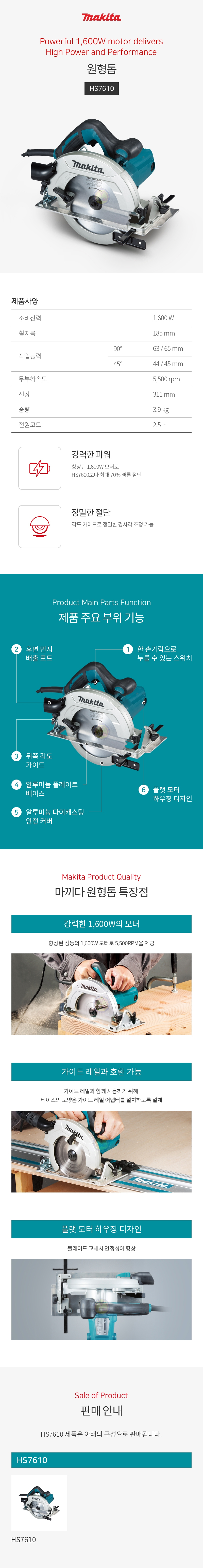 마끼다 원형톱 HS7610 (1600W) 원형스킬 스킬톱
