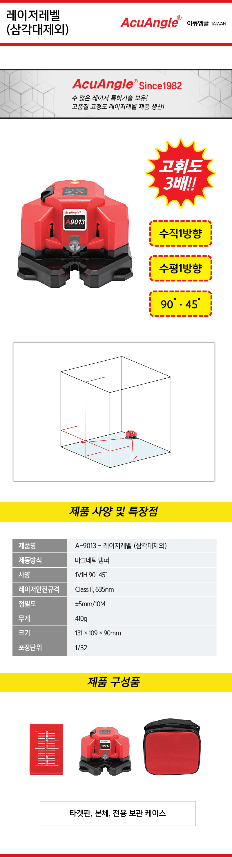 아큐앵글 레이저레벨기 A-8809PCN (수직1 수평1 3포인트) 아큐앵글, 수평계