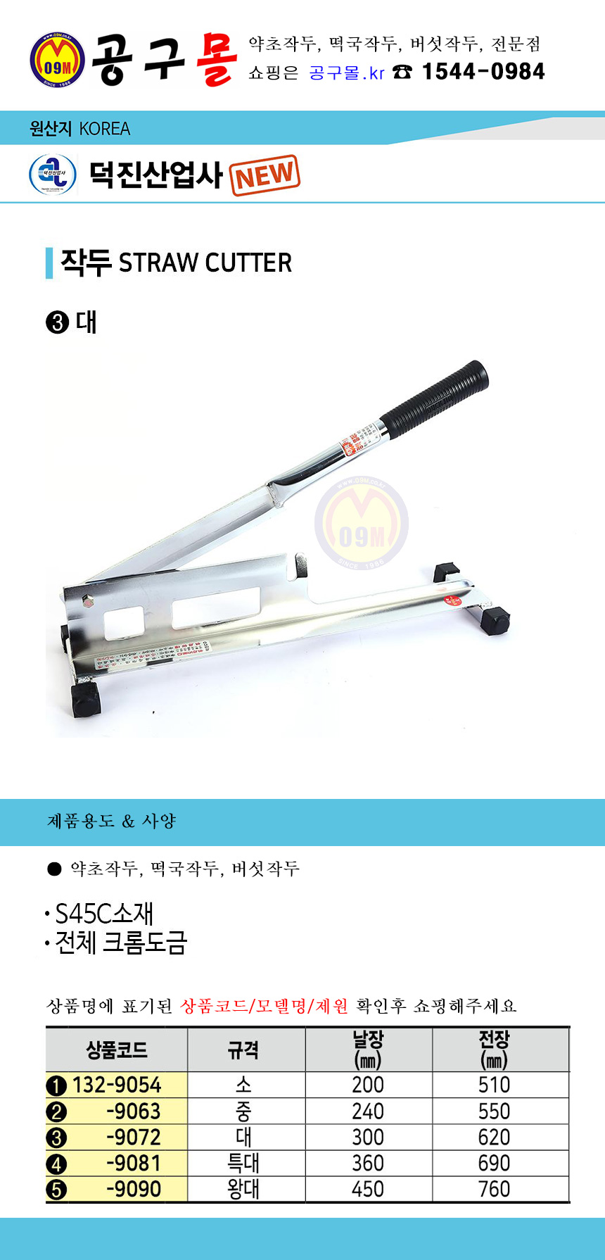 작두 620mm, 약재작두-대 덕진, 약초작두, 떡국작두, 버섯작두, 132-9072