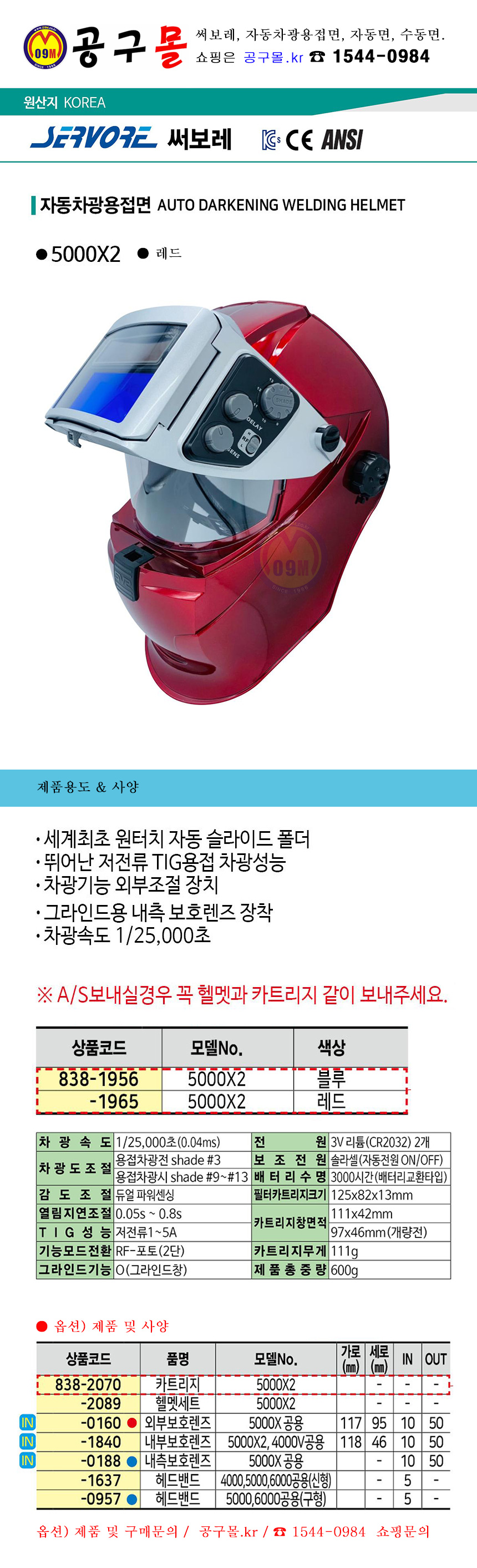 자동차광용접면 5000X2 레드 써보레,자동면, 용접면, 838-1965