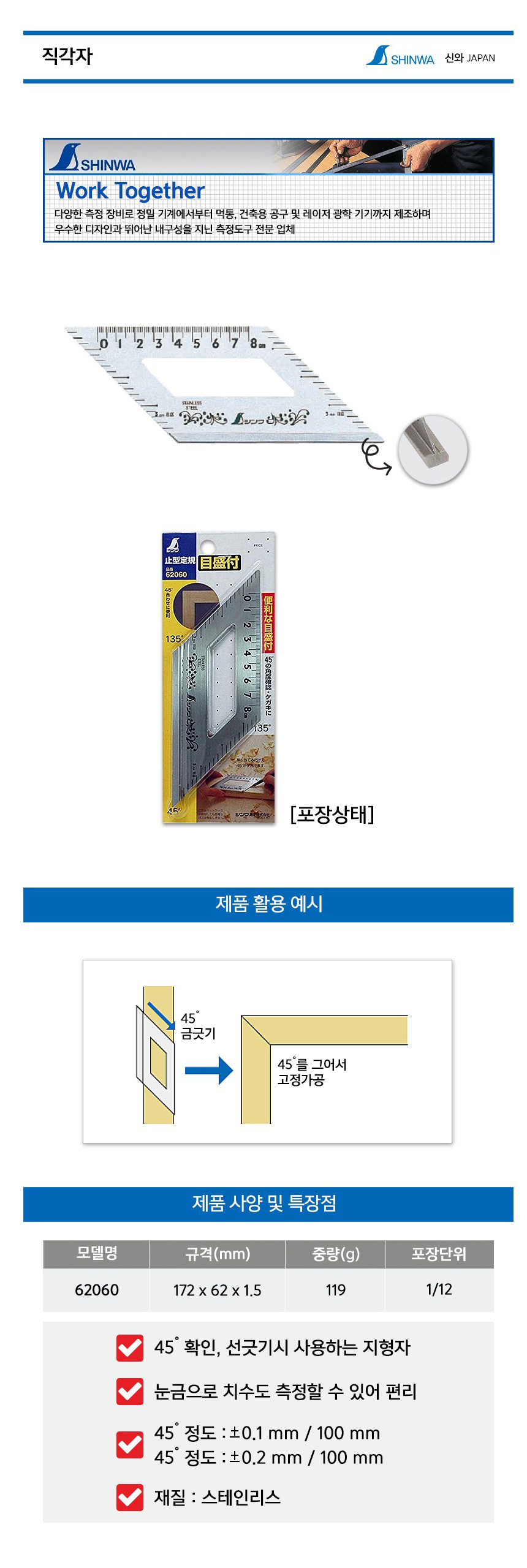 신와 스퀘어(자유자) 62596 SHINWA-신와,직각자,연귀자,,목공구