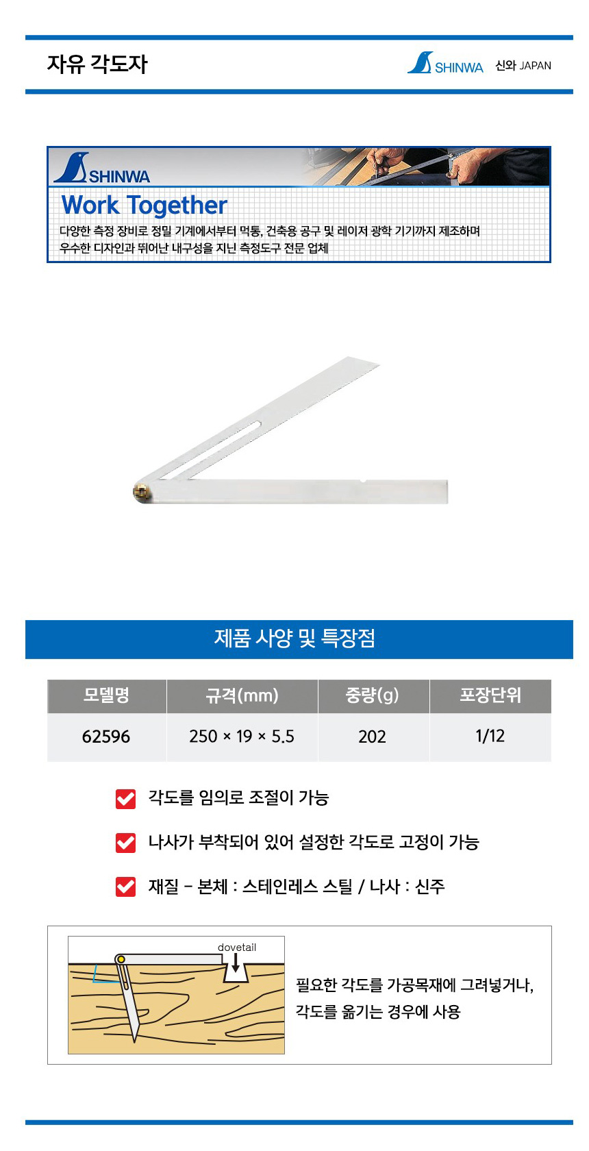신와 스퀘어(자유자) 62596 SHINWA-신와,직각자,연귀자,,목공구