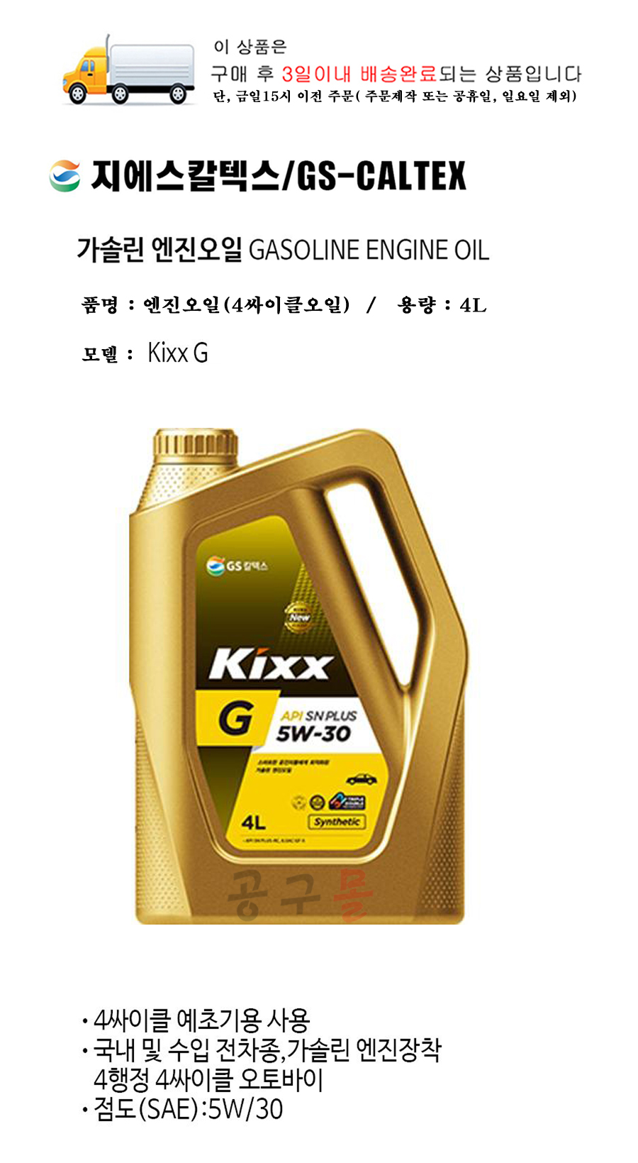 엔진오일(4싸이클오일) KixxG 4L 5W/30 GS-CALTEX, 4행정오일, 예초기오일