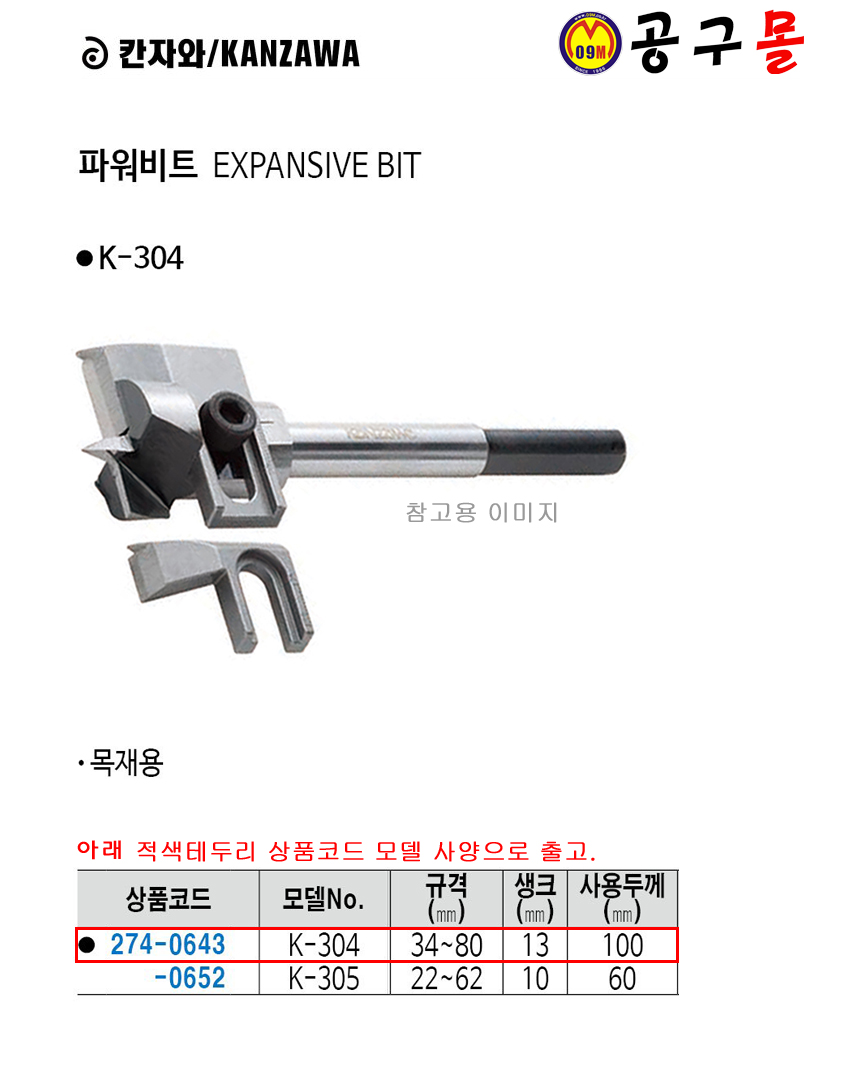 칸자와 목재 파워비트 K-304 (34-80MM) KANZAWA,공구몰,목재자유길이,자유길이 274-0643