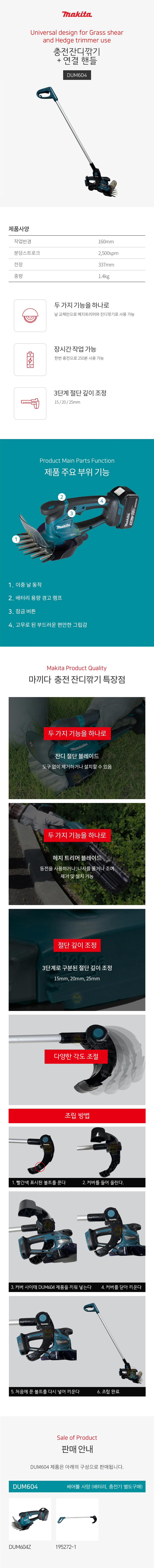 마끼다 충전잔디깍기 DUM604 (5Ah,1B,세트 핸들포함) 바리깡 잔디깎기 전정기
