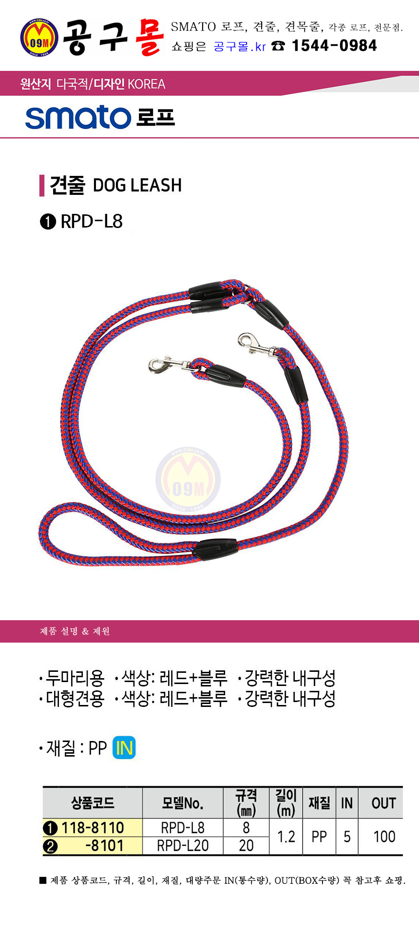 스마토 견줄 RPD-L8 (8MMx1.2M) smato , 애완견로프
