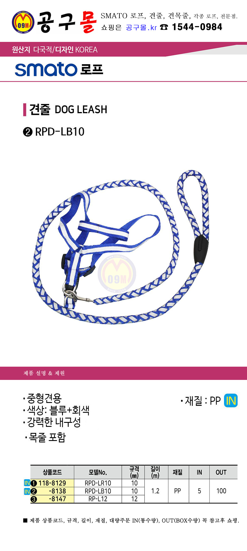 스마토 견줄 RPD-LB10 (10MMx1.2M) smato 애완견로프