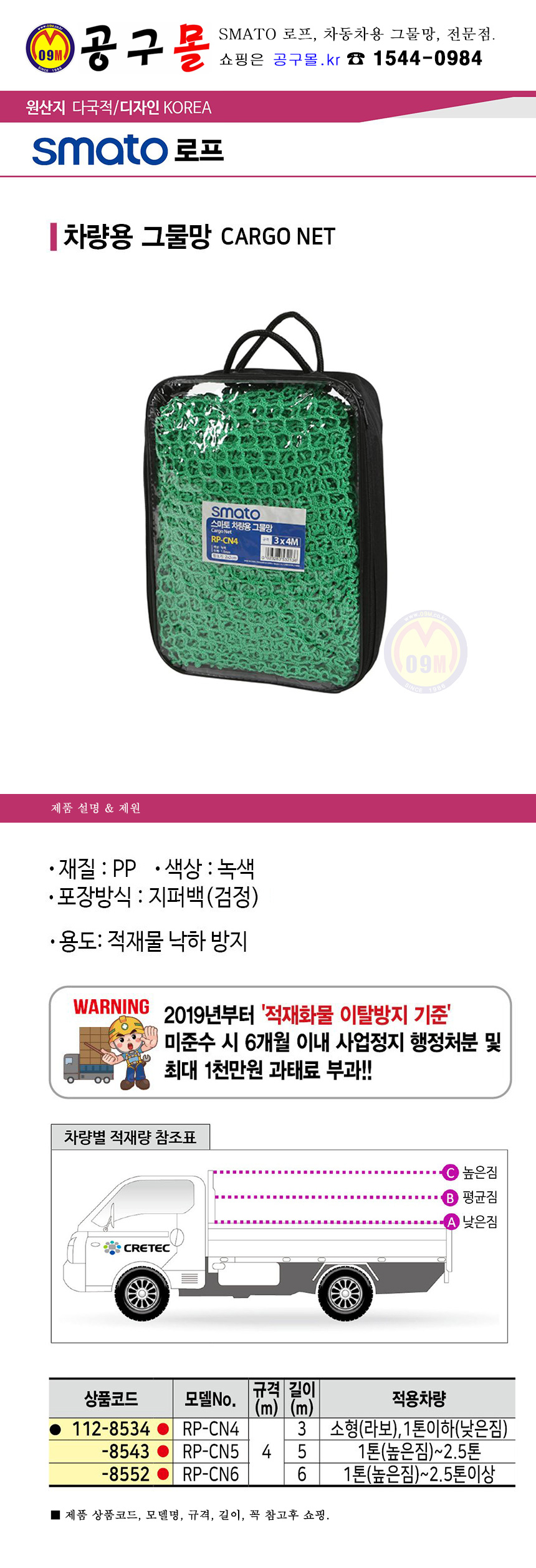 스마토 차량용 그물망 RP-CN6 4Mx6M 화물차.포터그물망,공구몰,112-8552