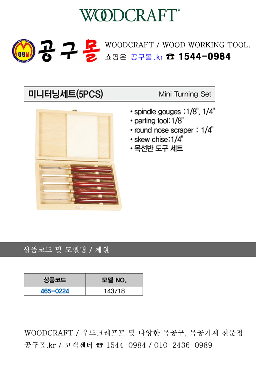 미니 터닝세트(5PC) 143718, 465-0224, 목선반끌, WOODCRAFT, 선반끌, 로구로끌