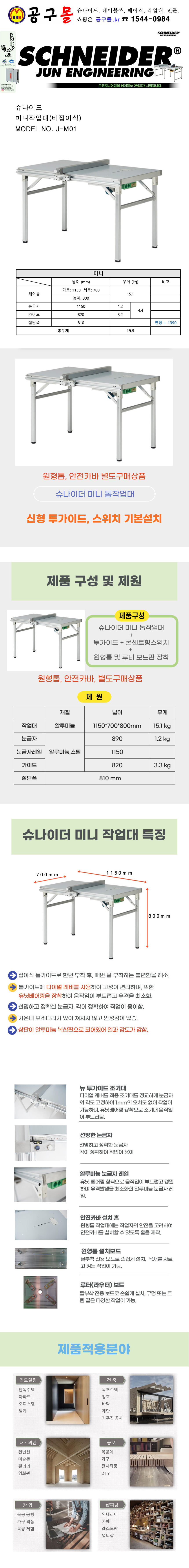 슈나이더 미니작업대 J-M01(비접이식) 원형톱별매, 이동식작업대, 합판재단, 아크릴재단, 준엔지니어링, JM01