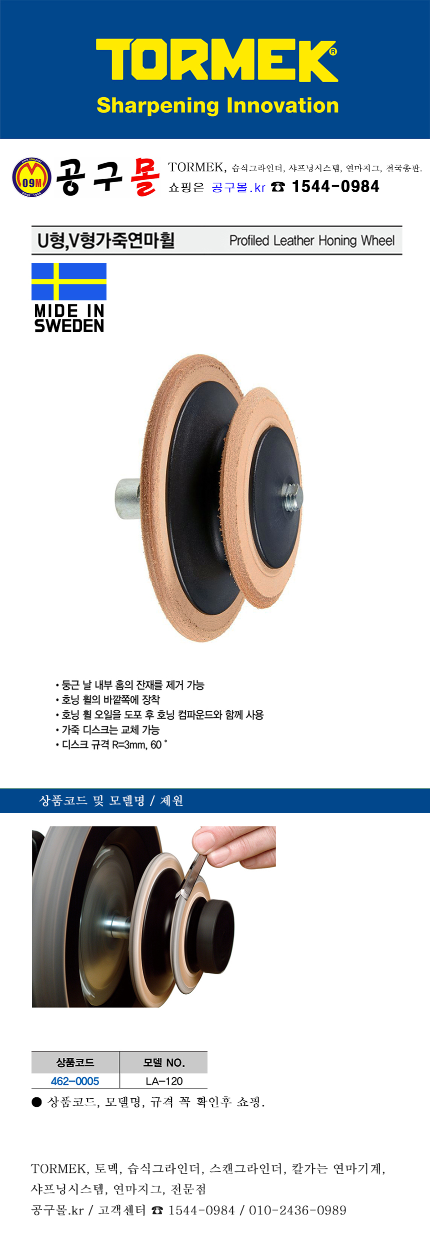 토멕 T-8용 가죽 연마휠 LA-120 (U형,V형) TORMEK, 토맥, 나이프연마기계 부품, 462-0005