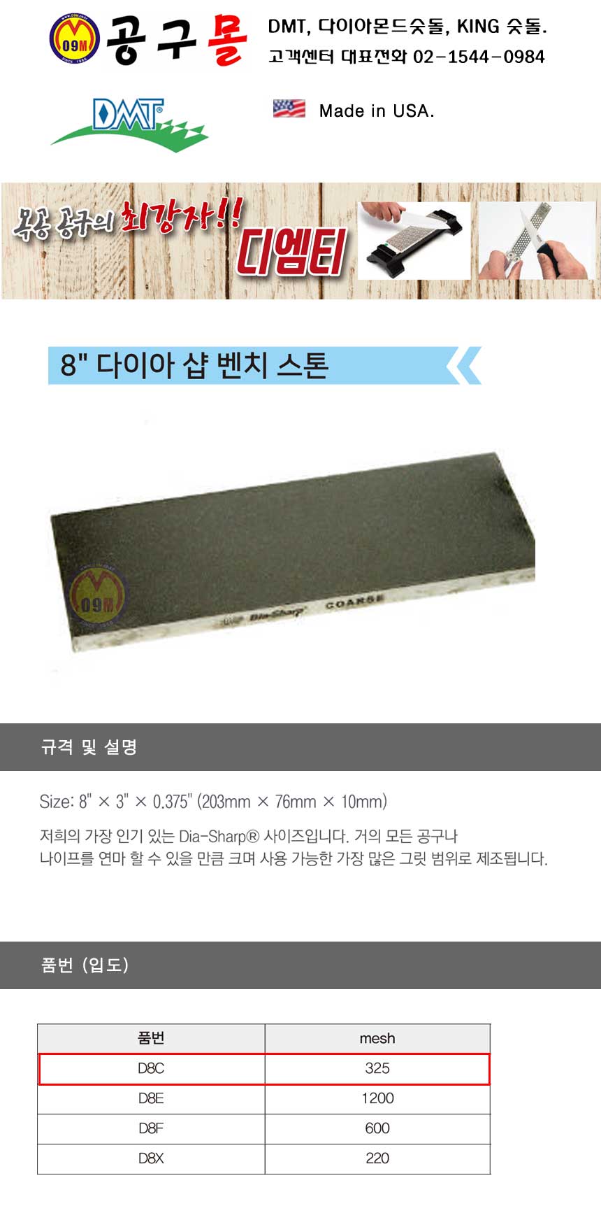 DMT 다이아몬드 숫돌(8) D8C(325) 디엠티,Dia-Sharp Bench Stone,453-0006,D8C325