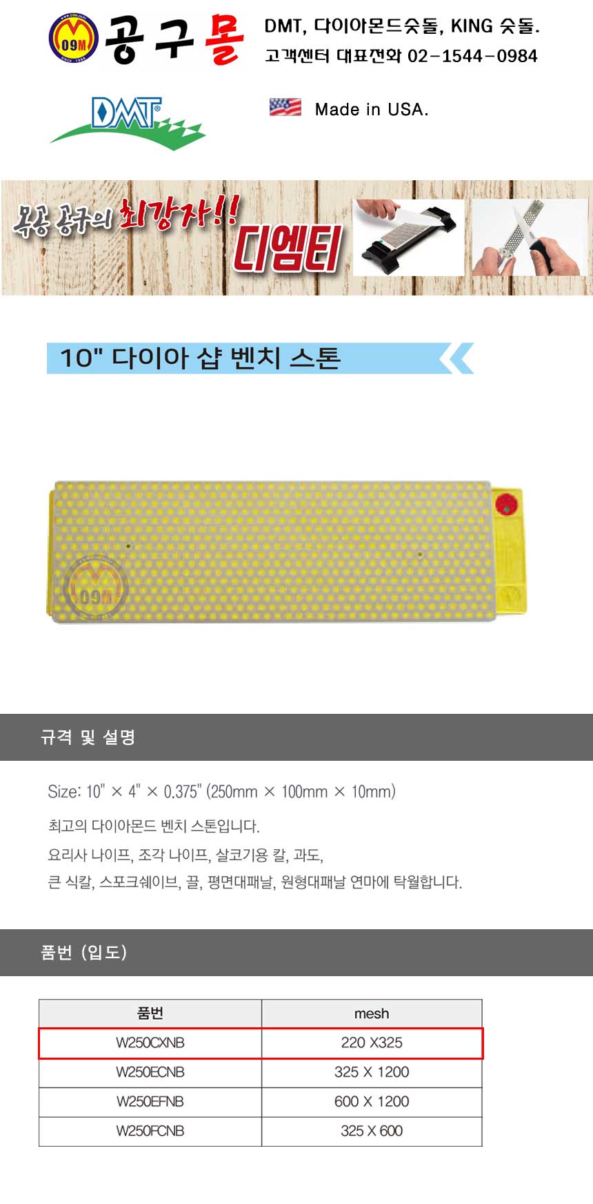 DMT 다이아몬드 양면숫돌(10) W250CXNB 325/220 숫돌, 디엠티,DuoSharp Bench,453-0015