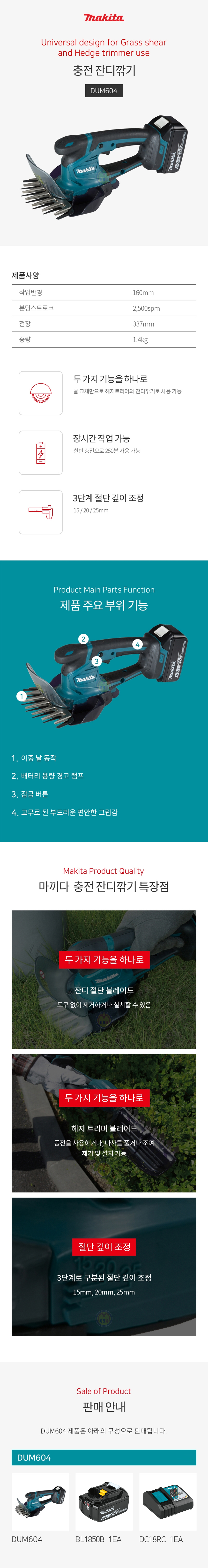 마끼다 충전잔디깍기 DUM604 (5Ah,1B세트) 바리깡 잔디깎기
