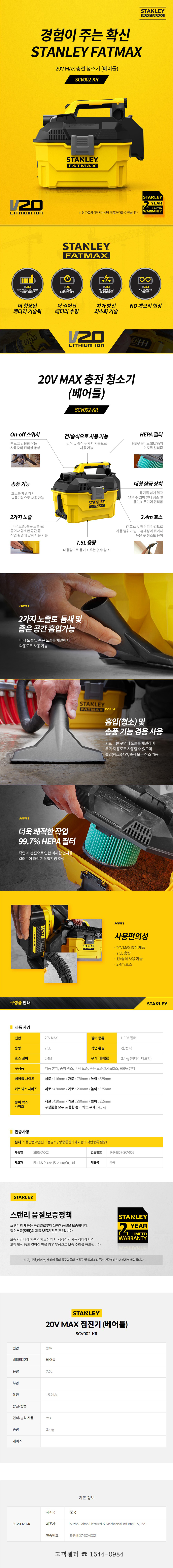 스탠리 20V MAX 집진기(배어툴) SCV002-KR STANLEY, 진공청소기, 충전집진기