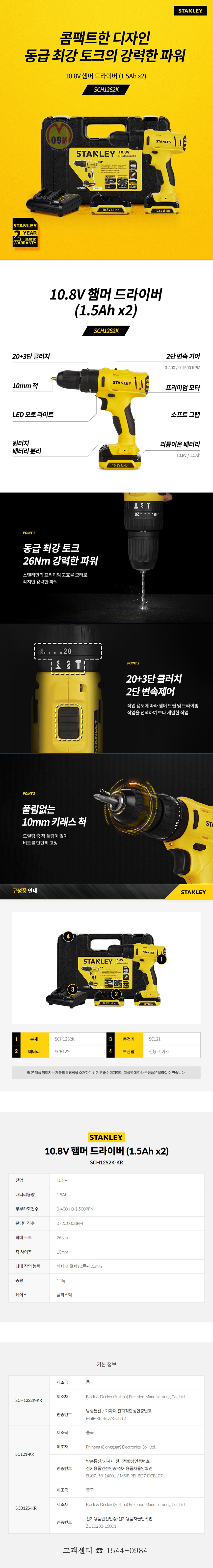 스탠리 10.8V 햄머드릴 드라이버 SCH12S2K-KR(1.5Ah,2B) STANLEY, 충전드릴, 충전드라이버