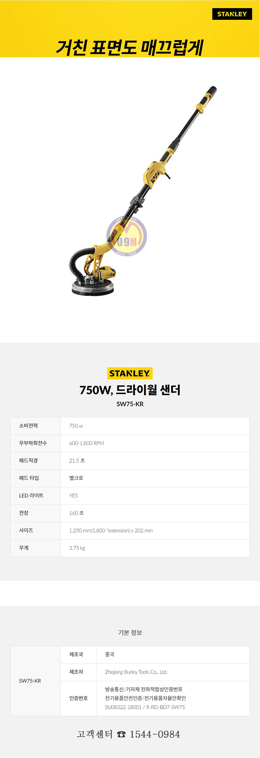 스탠리 드라이월 샌더(750W) SW75-KR 220V, 벽면샌더기, STANLEY, 사포기계, 오비탈샌더, 샌더기,C412-1231
