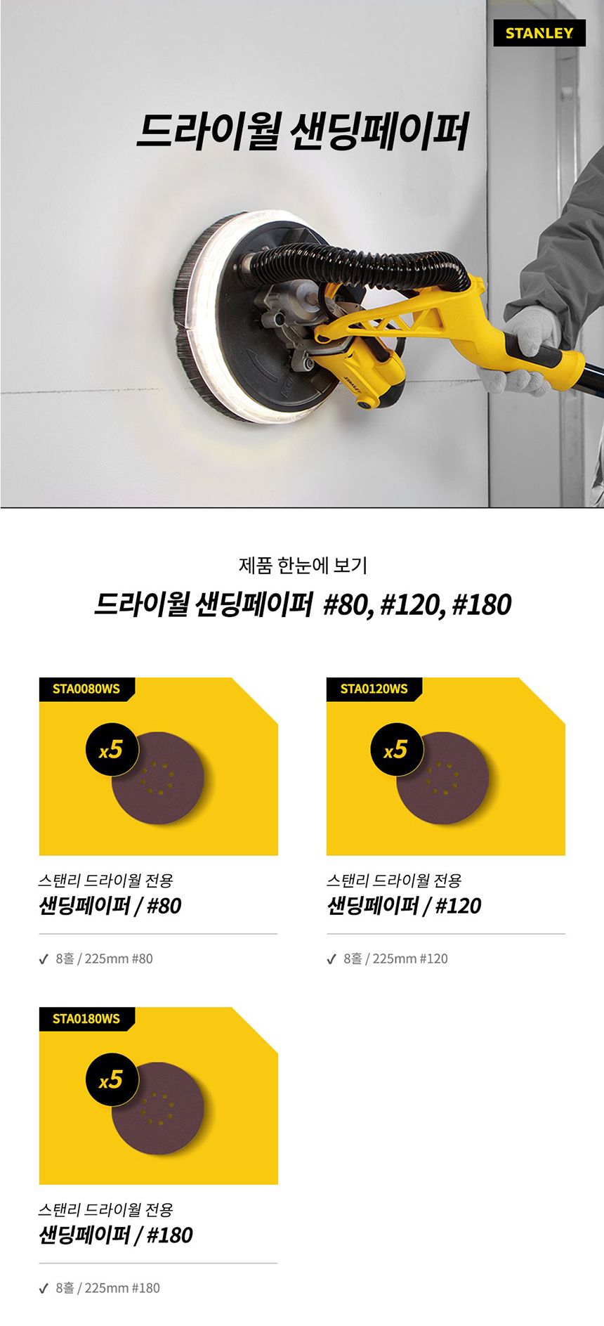 스탠리 드라이월 샌딩페이퍼 80(5장) STA0080WS (SW75-KR용) STANLEY, 벽면샌더기, 벽면사포
