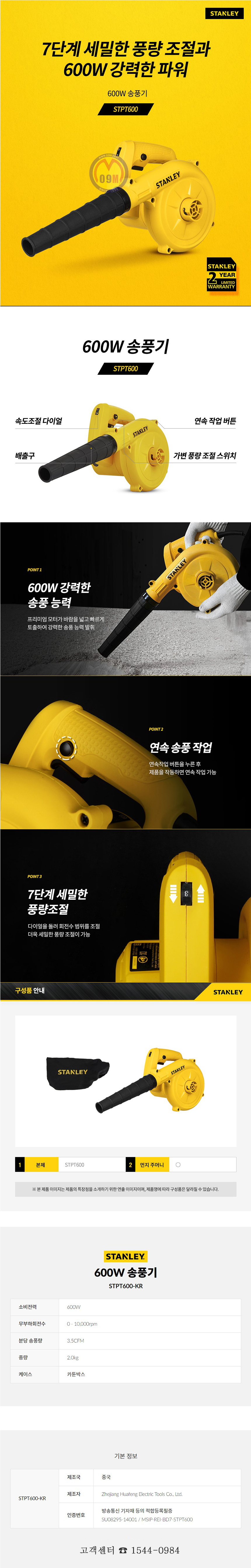 스탠리 송풍기(600W) STPT600-KR, 흡입기능STANLEY, 청소기,