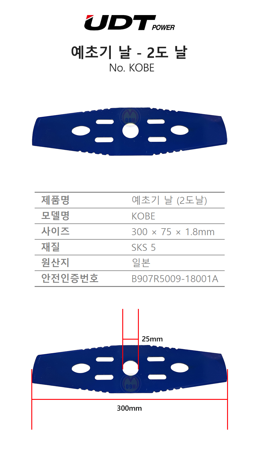 UDT 예초기날 KOBE (300mm) 일본생산 2도날 예초날 일자날