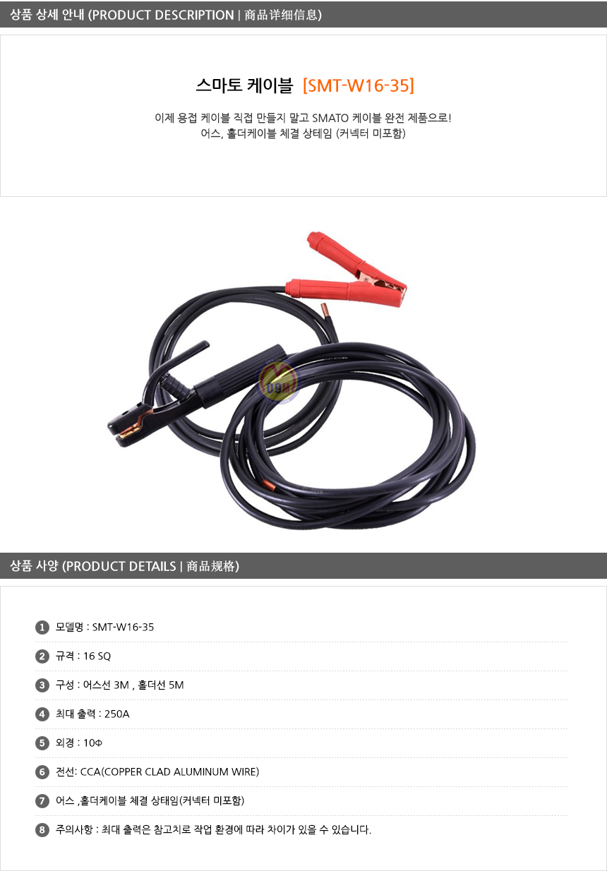 스마토 용접 케이블세트 SMT-W16-35 (16SQ, 홀더5M, 어스3M 세트)