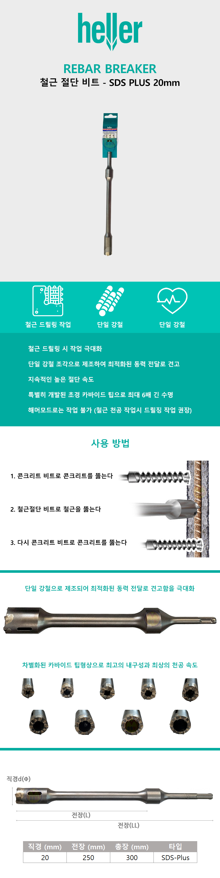 헬러 철근절단비트 20mm SDS타입 철근비트 콘크리트비트