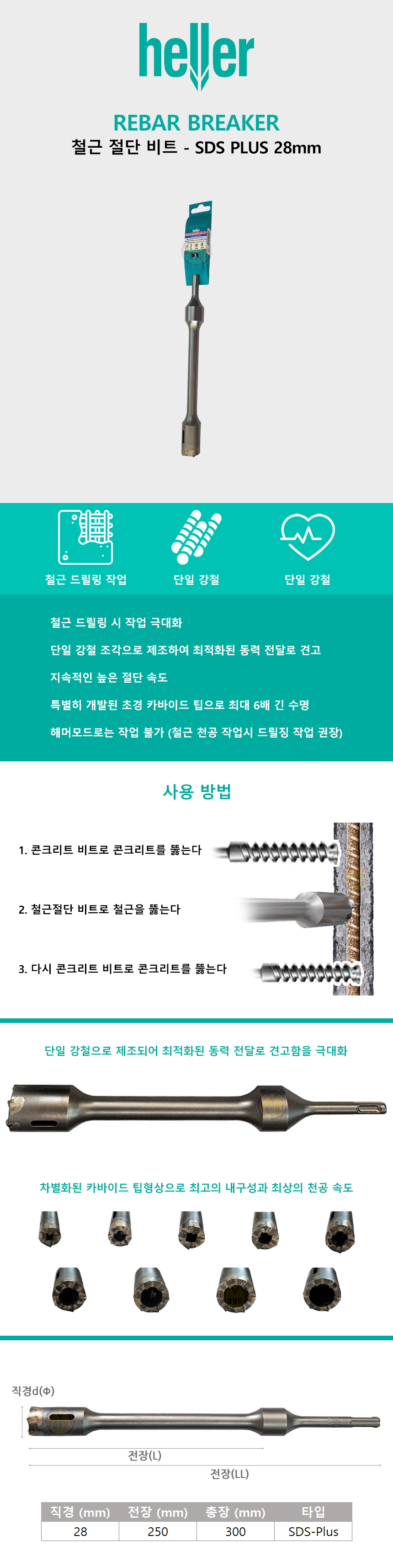 헬러 철근절단비트 28mm SDS타입 철근비트 콘크리트비트